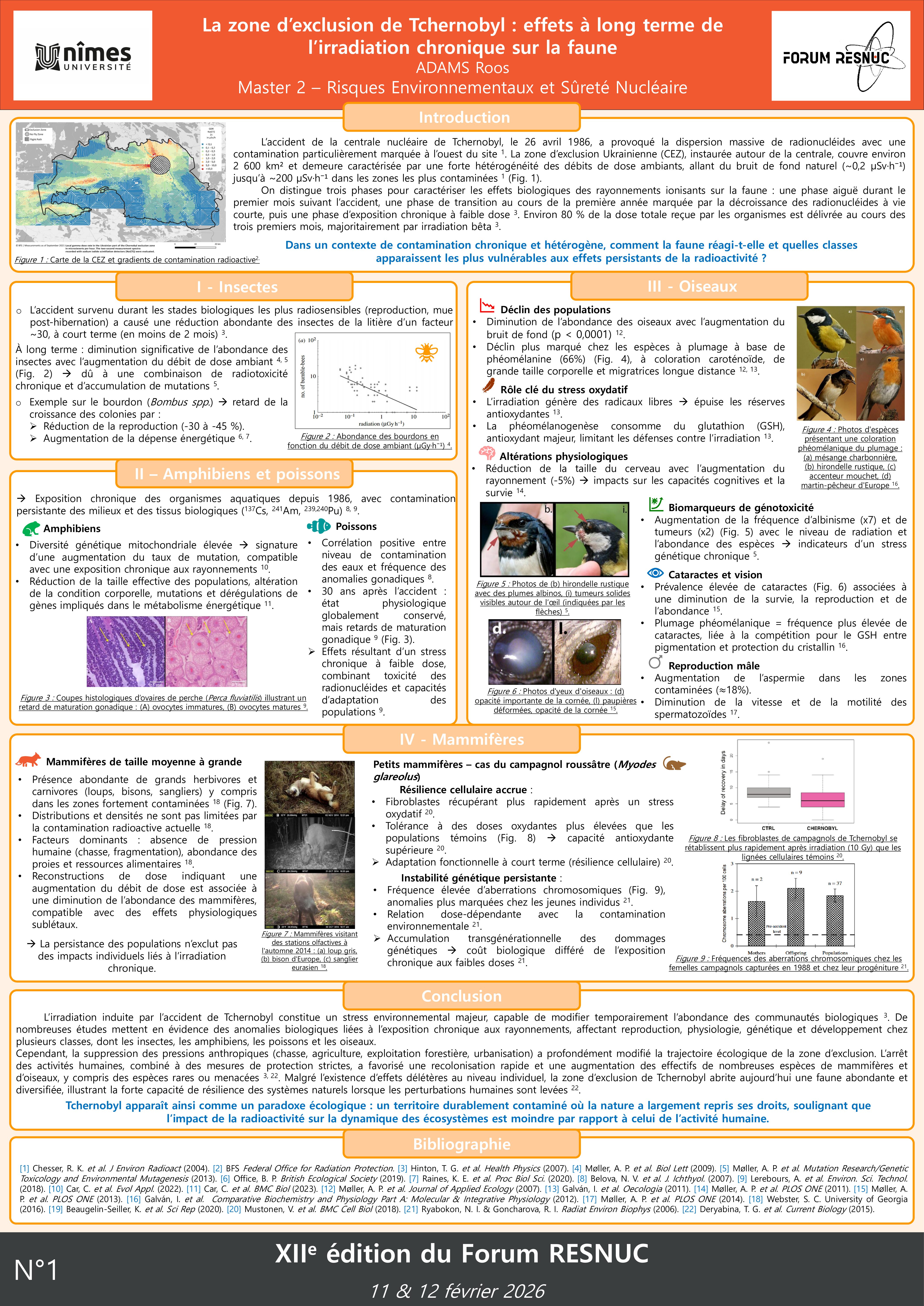 01 – La zone d’exclusion de Tchernobyl : effets à long terme de l’irradiation chronique sur la faune.29 January 2026 in Posters 2026 Poster n°1 - ADAMS Roos Share on Facebook Share on Twitter