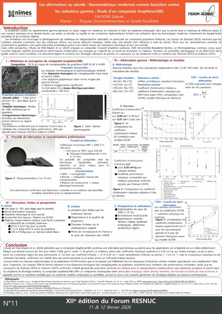 29 January 2026 15 – Les alternatives au plomb : Nanomatériaux modernes comme boucliers contre les radiations gamma : Étude d’un composite Graphène/ABS. Read More