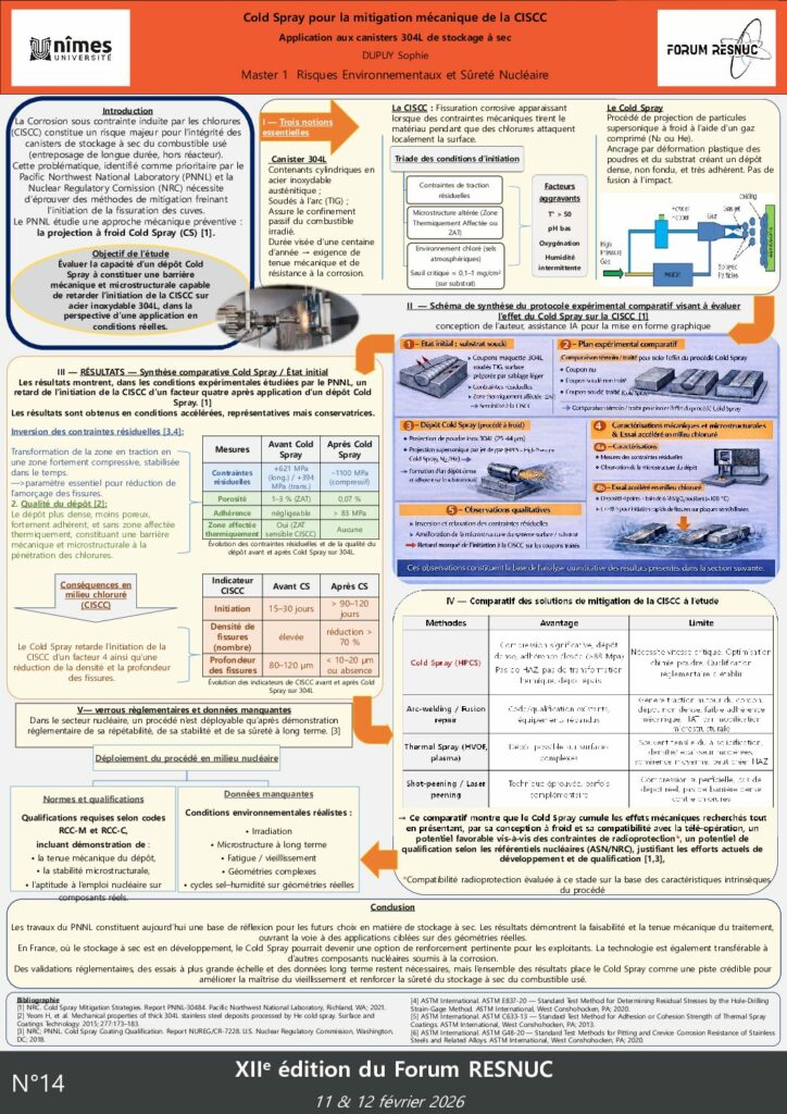 29 January 2026 14 – Cold Spray pour la mitigation mécanique de la CISCC : Application aux canisters 304L de stockage à sec. Read More