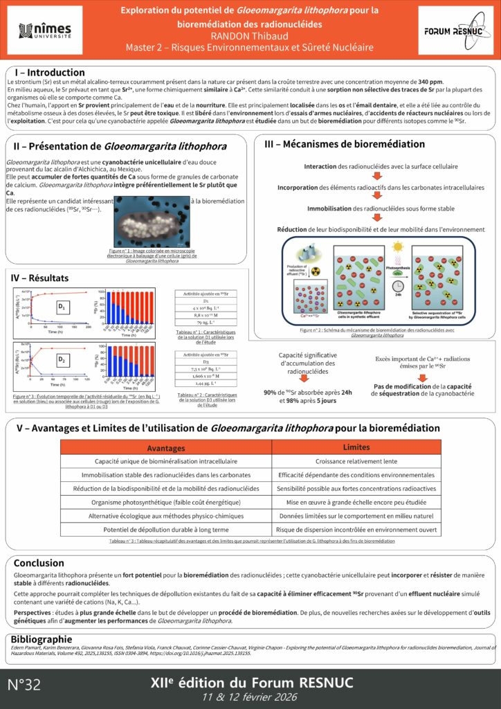 29 January 2026 32 – Exploration du potentiel de Gloeomargarita lithophora pour la bioremédiation des radionucléides. Read More