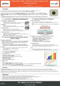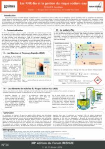 ImagePosters 2026 01 – La zone d’exclusion de Tchernobyl : effets à long terme de l’irradiation chronique sur la faune. ...Lire La Suite… ImagePosters 2026 03 – L’IA pour la Sûreté Nucléaire : Une Approche Multi-Échelle (Des Matériaux aux Systèmes). ...Lire La Suite… ImagePosters 2026 05 – Quelle est la teneur théorique idéale en Niobium permettant de minimiser le phénomène d’hydruration ? ...Lire La Suite… ImagePosters 2026 06 – Produire des engrais bas-carbone grâce aux SMR : un enjeu stratégique pour la souveraineté alimentaire. ...Lire La Suite… ImagePosters 2026 07 – De la fibre à la sûreté : innover pour surveiller l’atome. ...Lire La Suite… ImagePosters 2026 08 – Les réacteurs refroidis par caloducs (HPR) pour l’exploration spatiale. ...Lire La Suite… ImagePosters 2026 09 – Projet PELE : un réacteur nomade garantissant la sûreté en conditions extrêmes. ...Lire La Suite… ImagePosters 2026 10 – Approche pratique prometteuse : la fibre fonctionnelle QCS-3 pour la capture ultra-efficace de 131I dans les eaux usées médicales nucléaires. ...Lire La Suite… ImagePosters 2026 11 – Vieillissement de la cuve sous irradiation et impact sur la sûreté à long terme des réacteurs. ...Lire La Suite… ImagePosters 2026 12 – Quels impacts un mégafeu dans la zone d’exclusion de Tchernobyl pourrait-il avoir sur la France métropolitaine ? ...Lire La Suite… ImagePosters 2026 13 – Lunettes dosimètres radiophotoluminescentes (RPL) : Un outil innovant pour la mesure locale de l’exposition oculaire aux rayonnements. ...Lire La Suite… ImagePosters 2026 14 – Cold Spray pour la mitigation mécanique de la CISCC : Application aux canisters 304L de stockage à sec. ...Lire La Suite… ImagePosters 2026 14 – Cold Spray pour la mitigation mécanique de la CISCC Application aux canisters 304L de stockage à sec ...Lire La Suite… ImagePosters 2026 15 – Les alternatives au plomb : Nanomatériaux modernes comme boucliers contre les radiations gamma : Étude d’un composite Graphène/ABS. ...Lire La Suite… ImagePosters 2026 16 – Le graphite nucléaire : une nouvelle source d’anodes hautes performances pour batteries lithium-ion. ...Lire La Suite… ImagePosters 2026 18 – Amélioration des performances de blindage neutronique du béton par incorporation de serpentine. ...Lire La Suite… ImagePosters 2026 19 – Lutter contre l’oubli du Projet CIGÉO : l’innovation technologique au service de la transmission de la mémoire. ...Lire La Suite… ImagePosters 2026 20 – La Réalité Augmentée à l’École Des Métiers de MÉLOX. ...Lire La Suite… ImagePosters 2026 21 – Protonthérapie : vers une radiothérapie de haute précision pour un traitement plus sûr et efficace du cancer du pancréas. ...Lire La Suite… ImagePosters 2026 22 – Hydrogène bas carbone : l’électrolyse haute température couplée au nucléaire, une voie innovante pour la décarbonation industrielle. ...Lire La Suite… ImagePosters 2026 23 – Rhizofiltration : des racines au service de la dépollution radioactive ? ...Lire La Suite… ImagePosters 2026 24 – Les jumeaux numériques dans le nucléaire. ...Lire La Suite… ImagePosters 2026 25 – Le stockage réversible du tritium en matrice d’uranium appauvri. ...Lire La Suite… ImagePosters 2026 26 – Missions habitées sur Mars. ...Lire La Suite… ImagePosters 2026 28 – Le graphite nucléaire au sein des réacteurs HTGR : Atténuation post utilisation. ...Lire La Suite… ImagePosters 2026 29 – La muographie par diffusion, une méthode d’imagerie viable pour observer des structures nucléaires complexes ? ...Lire La Suite… ImagePosters 2026 30 – L’astate-211, un radionucléide utilisé en radiothérapie interne vectorisée alpha pour le traitement du cancer : exemple du cancer du poumon. ...Lire La Suite… ImagePosters 2026 31 – Radioprotection spatiale : potentiel de la mélanine fongique pour des combinaisons martiennes ...Lire La Suite… ImagePosters 2026 32 – Exploration du potentiel de Gloeomargarita lithophora pour la bioremédiation des radionucléides. ...Lire La Suite… ImagePosters 2026 34 – Les RNR-Na et la gestion du risque sodium-eau. ...Lire La Suite… ImagePosters 2026 35 – Le Thorium : L’or noir du futur Français ? ...Lire La Suite… ImagePosters 2026 36 – Entre surface et profondeur une approche géologique et technique du stockage vertical. ...Lire La Suite… ImagePosters 2026 37 – Le déploiement du SMR type HTGR-TRISO et son impact géo-économique au sein du Cluster Industriel de Bazancourt-Pomacle ...Lire La Suite… ImagePosters 2026 38 – Le déploiement du SMR type HTGR-TRISO et son impact géo-économique au sein du Cluster Industriel de Bazancourt-Pomacle. ...Lire La Suite…